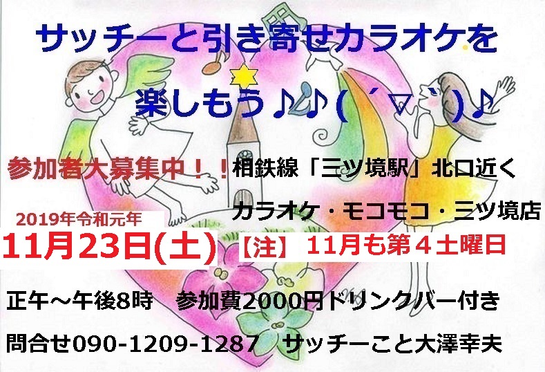 11/23(土)(横浜・三ツ境)「サッチーと引き寄せカラオケを楽しもう(^O^)/」☆参加者大募集〜☆