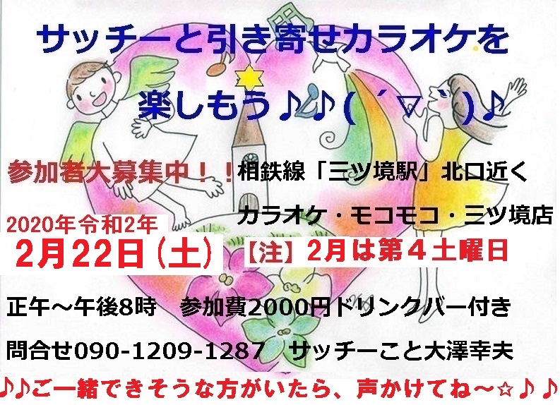 HT横浜2020.2/22(土)「サッチーと引き寄せカラオケを楽しもう(^O^)/」☆参加者大募集〜☆